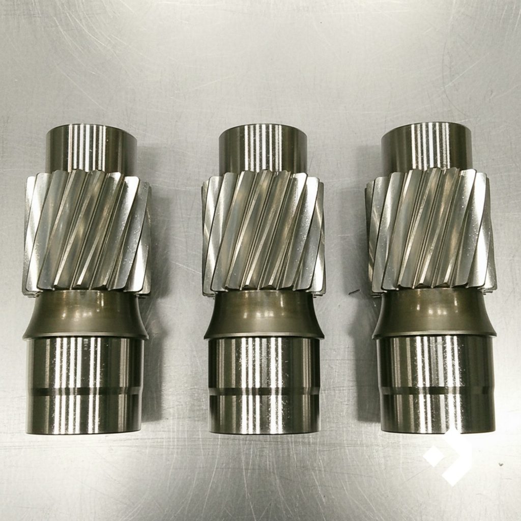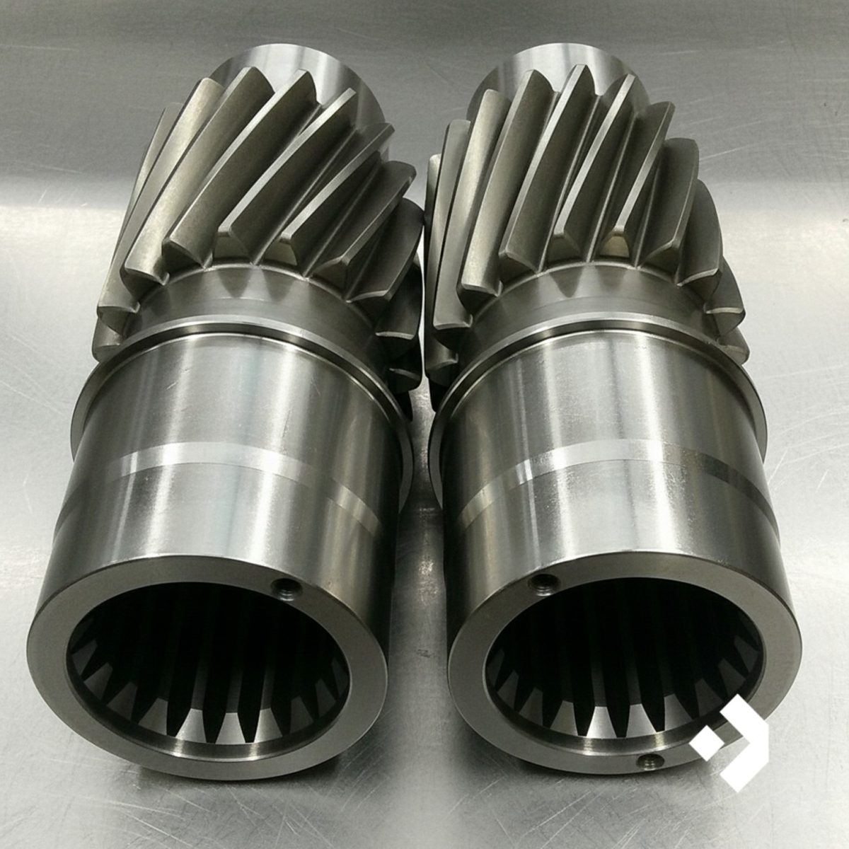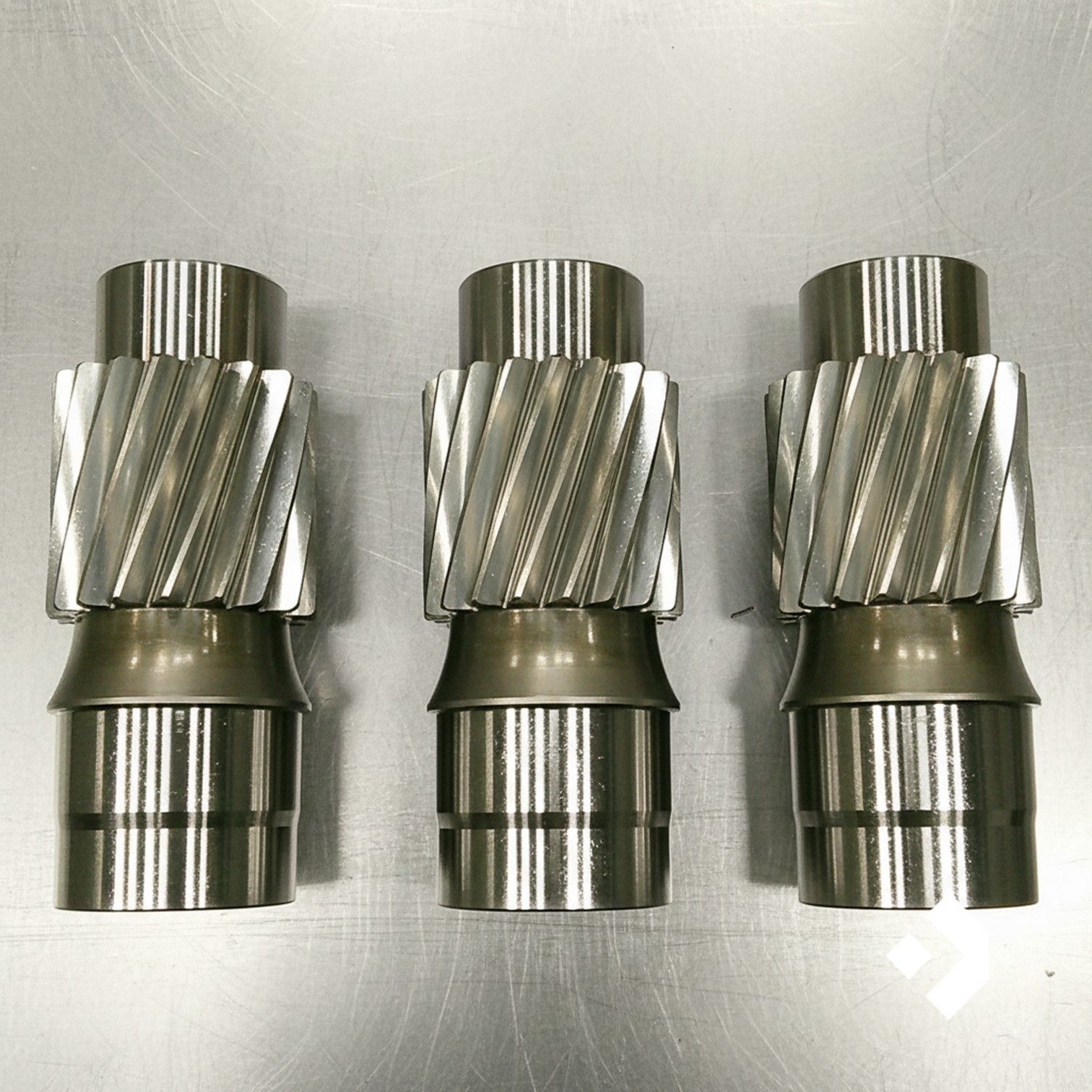 – 19-tooth, 6MOD helical gear ground to AGMA Grade 6 quality after case hardening